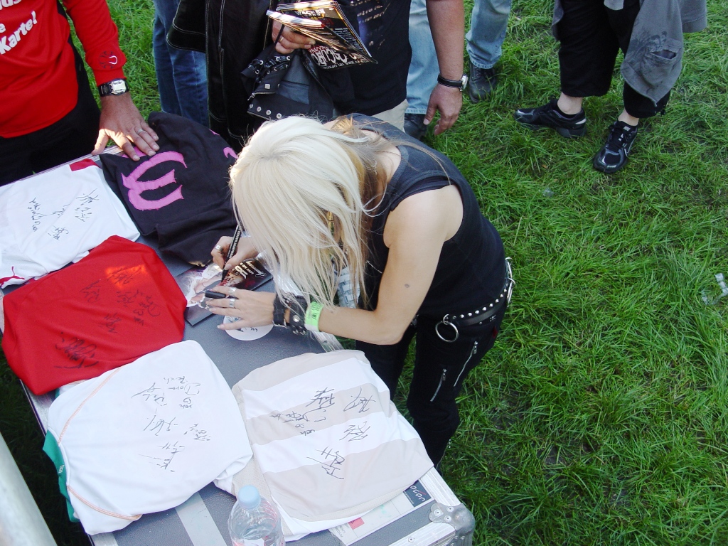 Mit Doro Pesch sind wir inzwischen schon fast freundschaftlich verbunden. Bereits im letzten Jahr beteiligte sich die sympathische Künstlerin zusammen mit Sabina Classen (Holy Moses) an unserer Aktion (s. hier). Auch diesmal ließ Doro es sich nicht nehmen, die Rote Karte in unsere Kamera zu halten und die mitgebrachten Trikots zu unterschreiben. „Ich habe nicht das geringste Verständnis für Rassisten und eure Aktion finde ich super!“, verriet uns Doro bei unserem Gespräch.