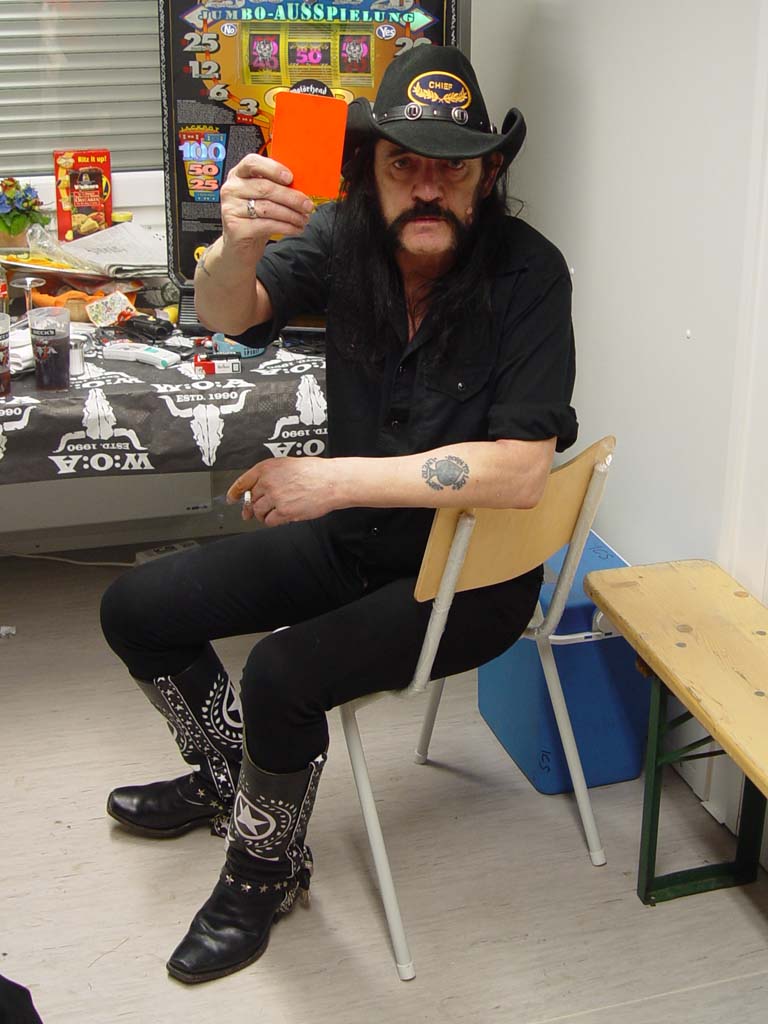 Ich weiß nicht so recht, wie ich das Gefühl beschreiben soll, welches mich in Lemmys Garderobe beschlich. Man kann es wohl am ehesten mit einer Papst-Audienz vergleichen, auch wenn ich selbst noch keine erlebt habe. Über 30 Jahre Rock’n’Roll-Geschichte standen leibhaftig vor mir. Es kommt nun wirklich nicht sehr oft vor, dass ich ehrfürchtig bin – in diesem Moment war ich es.