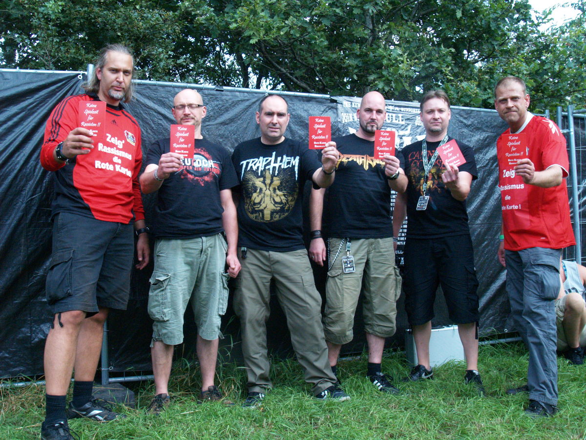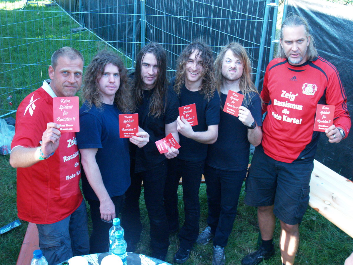Accu§er gehören zu den Urgesteinen im deutschen Trash-Metal. Daher waren wir sehr froh, dass wir die Band aus Siegen für unsere Aktion gewinnen konnten. „Na klar sind wir dabei“, sagte uns Frank Kimpel, der Bassist von Accu§er, und schon stand die komplette Band mit der Roten Karte in der Hand vor unserer Kamera. Wir sagen vielen Dank an die Jungs für das tolle Engagement gegen Rassismus.
