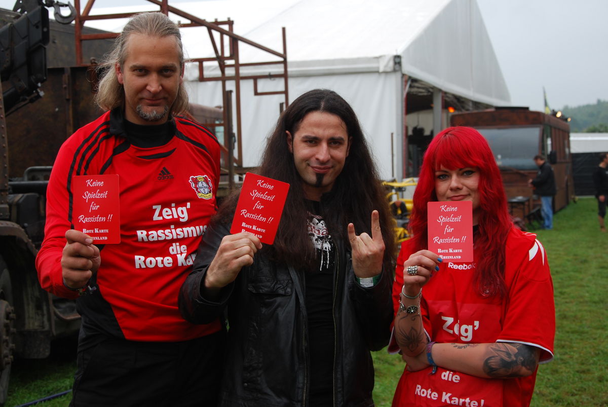 Rudolf Schenker zu begegnen gehört für einen Hard’n’Heavy-Fan so ziemlich zu den größten Momenten überhaupt – und umso schöner ist es, wenn dies so überraschend geschieht, wie uns auf dem W:O:A 2011.Es war auf der Veranstalter-Pressekonferenz als Holger Hübner und Thomas Jensen bekanntgaben, dass die Scorpions auf dem nächsten Wacken auftreten werden und als Überraschungsgast Rudolf Schenker begrüßten. Diese Chance haben wir uns natürlich nicht entgehen lassen – und Rudolf war sofort bereit, für unser Projekt die Rote Karte in die Kamera zu halten. Auch Thomas Jensen gesellte sich gleich dazu, um sein Statement gegen Rassismus abzugeben. Vielen Dank für euer Engagement gegen Fremdenfeindlichkeit und auch für den Gänsehaut-Moment, den ihr uns damit bereitet habt.