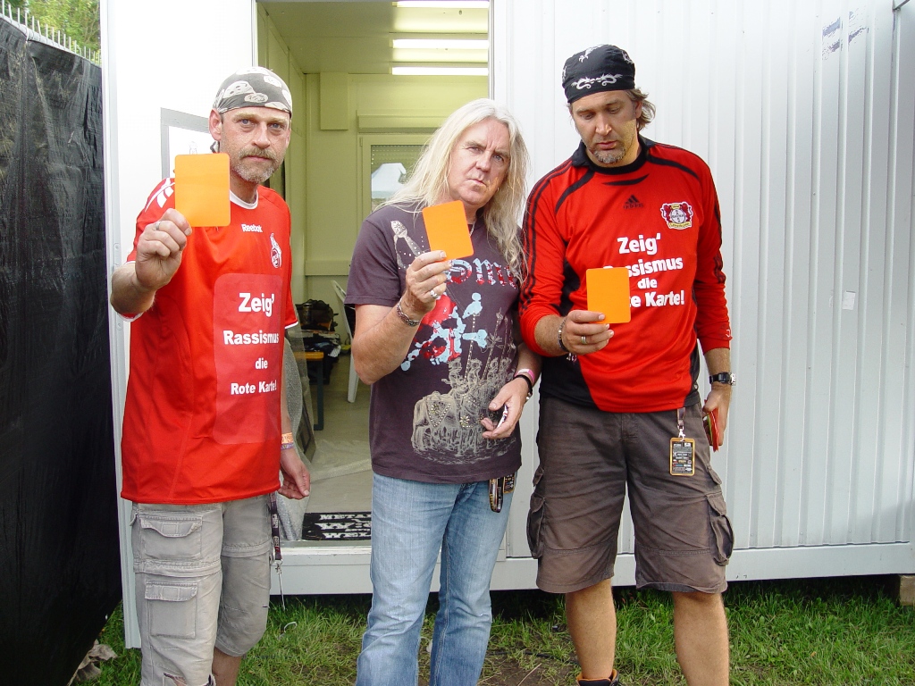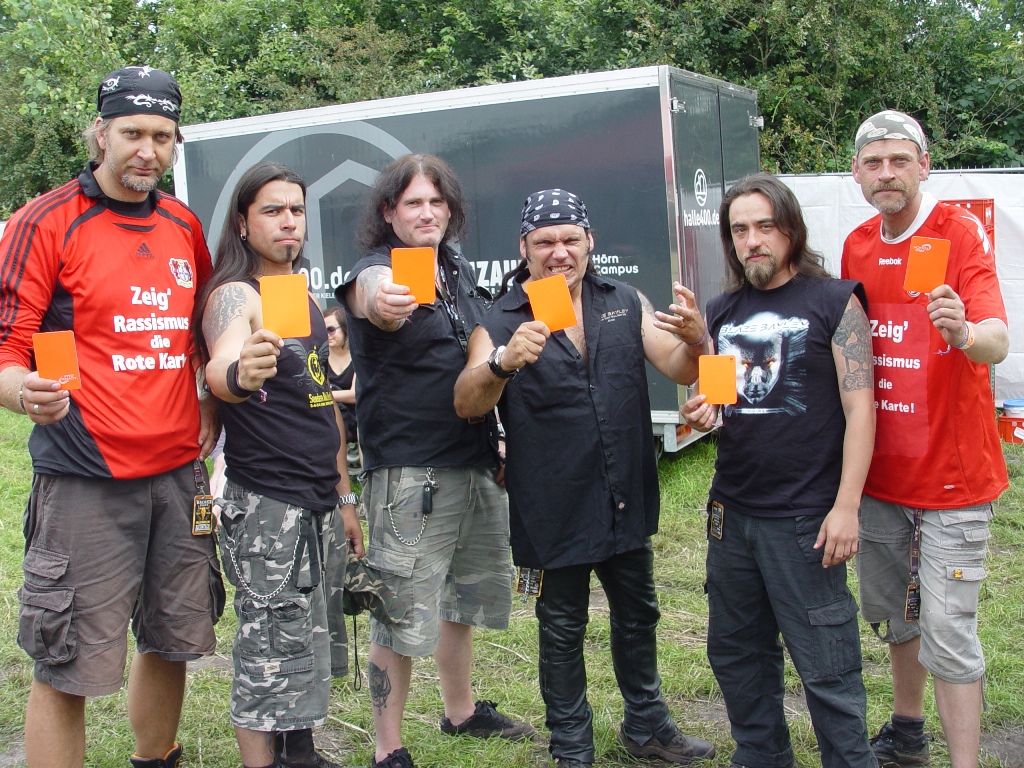 Blaze Bayley, von 1994 – 1999 Sänger bei Iron Maiden, trafen wir zufällig auf dem W:O:A. Dabei versteht es sich von selbst, dass wir uns solch eine Chance natürlich nicht nehmen ließen. Blaze war auch sofort bereit, für uns die Rote Karte in die Kamera zu halten. Er legte jedoch besonderen Wert darauf nicht als Einzelperson, sondern mit der gesamten Band an unserem Projekt teilzunehmen. Natürlich hatten wir auch dagegen nicht das geringste einzuwenden.